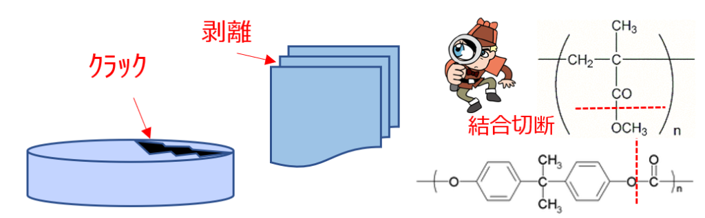 クラック、変色、剥離、変形、物性強度低下など、製品、部材などに発生する不具合は様々です。その多くは、製品を構成する材料に原因がある場合が多く、その材料を分析調査することで解決することがあります。何が起きているのかを化学、および反応機構でアプローチする方法をご紹介します。