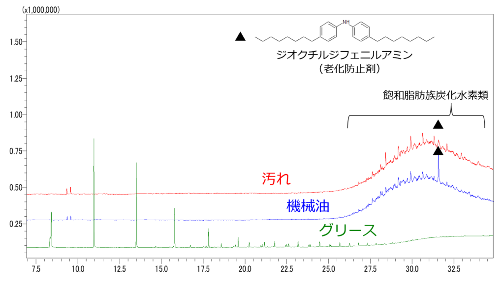 GC-MS分析の前処理として溶媒抽出を行う事で、目的物を高感度に分析出来る場合があります。ここではウエスで拭いた汚れの成分比較、感熱紙に含まれる顕色剤の成分比較を溶媒抽出を用いて行った例を紹介します。
