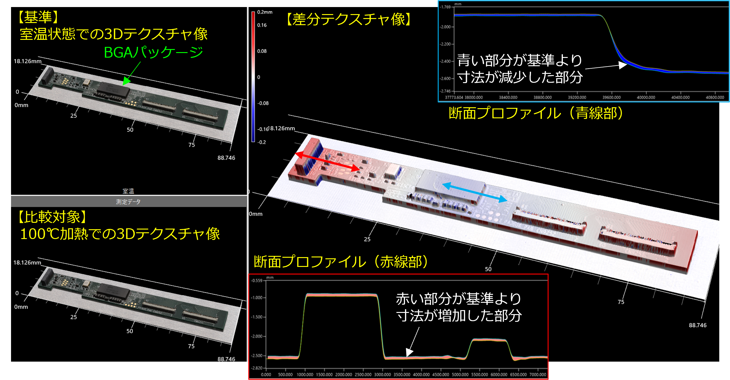 3D形状測定機による加熱変形観察(有機基板編)