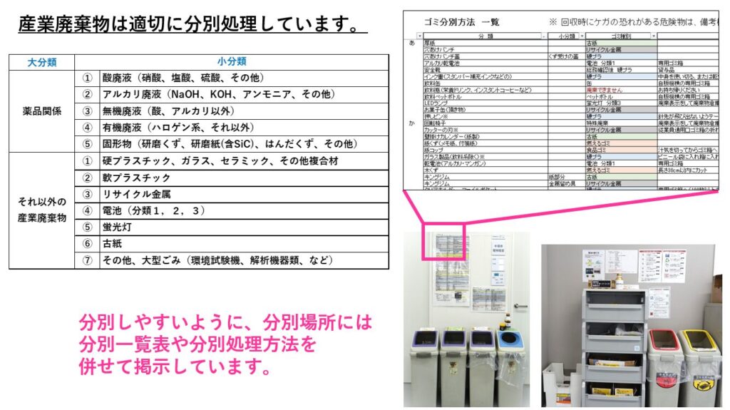 また、社内で排出される産業廃棄物は適切に分別処理し、人の健康や環境への配慮を怠ることはありません。限りある資源の有効活用と、環境への負荷低減を積極的に推進していきます。